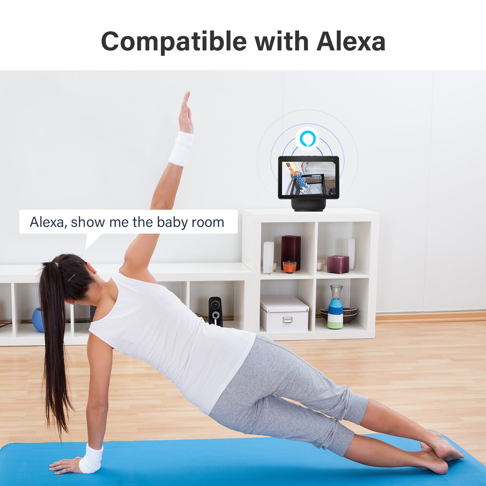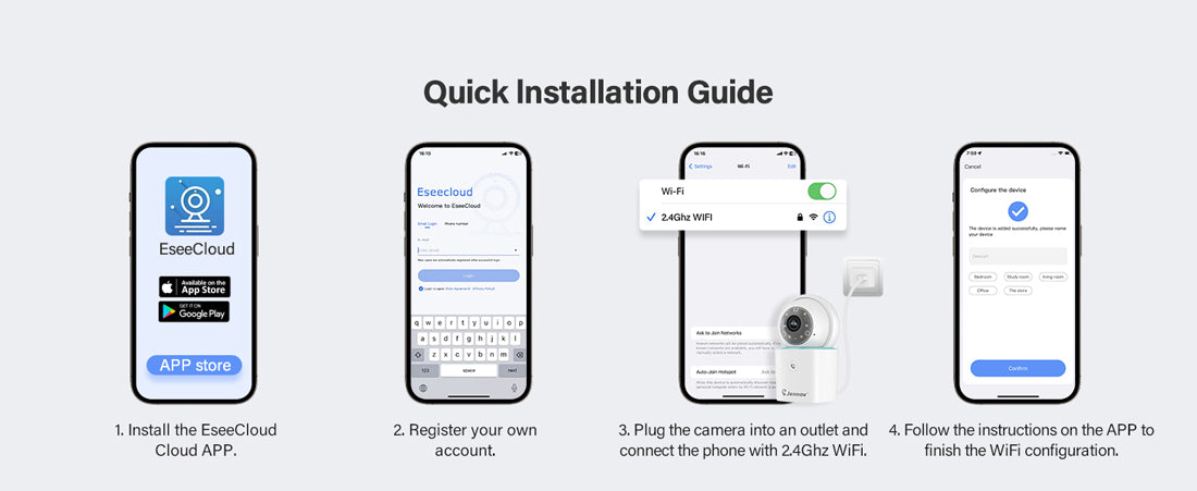 This indoor security camera is compatible with Alexa, allowing you to view the live feed of the home cameras indoor with simple voice command control. In addition, surveillance & security cameras is very easy to install. Simply place it in the location you want to monitor and connect to a 2.4GHz Wi-Fi network through the app. (Not supported 5Ghz)
