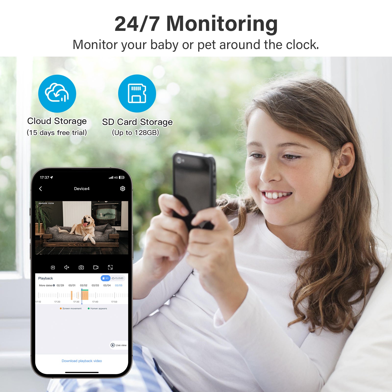 24/7 Recording & SD Cloud Storage & Multi-User Sharing
