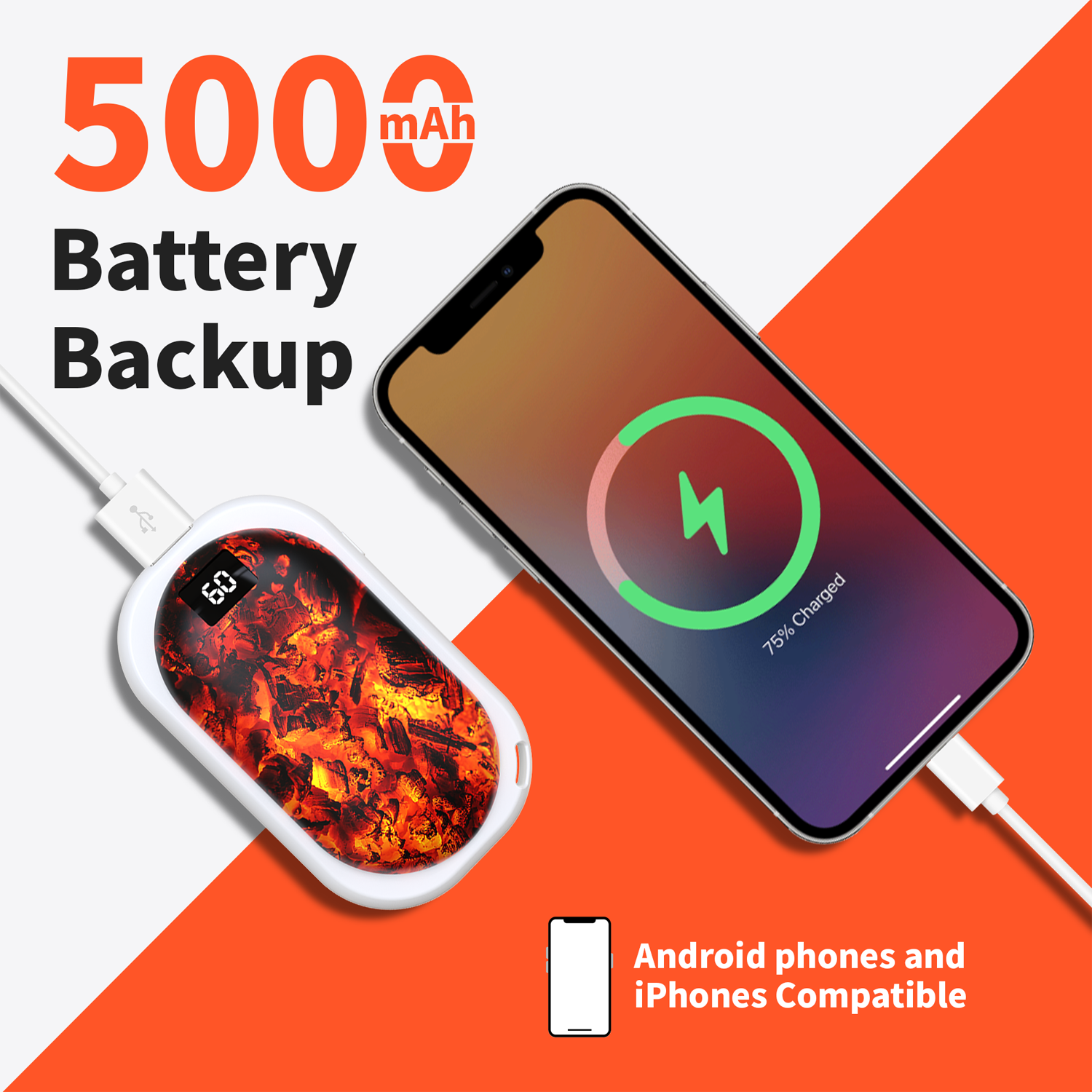 【Extra Backup Power】More than just warming, it transforms into a power bank, charging iPhones and Android devices. All in a compact, travel-friendly design